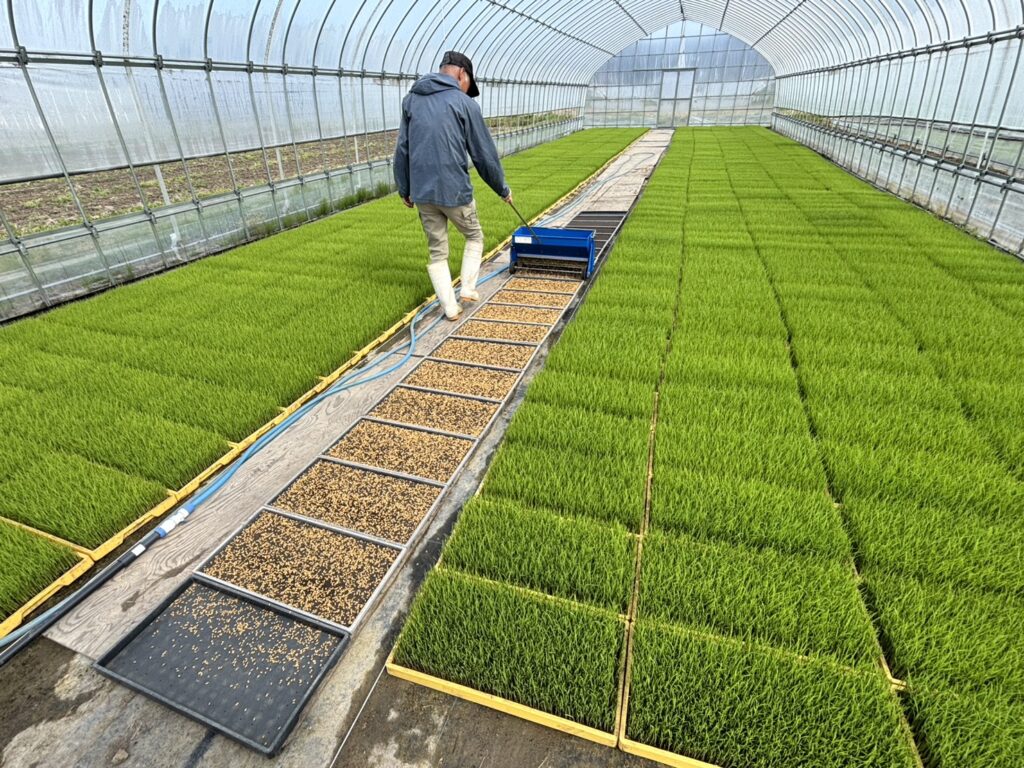 今年はJA特別栽培米コシヒカリの生産量を増やすほか、丹波栗の生産に取り組むことに加え、新たに米粉専用品種「亜細亜のかおり」の試験栽培を行います。「亜細亜のかおり」は農研機構により開発され2022年に品種登録された高アミロースの米粉専用米で、反当り720kgの多収米です。米粉麺に適正があるほか、米粉パンの食感を軽くできたり、嚥下食に活用する取り組みも進んでいます。